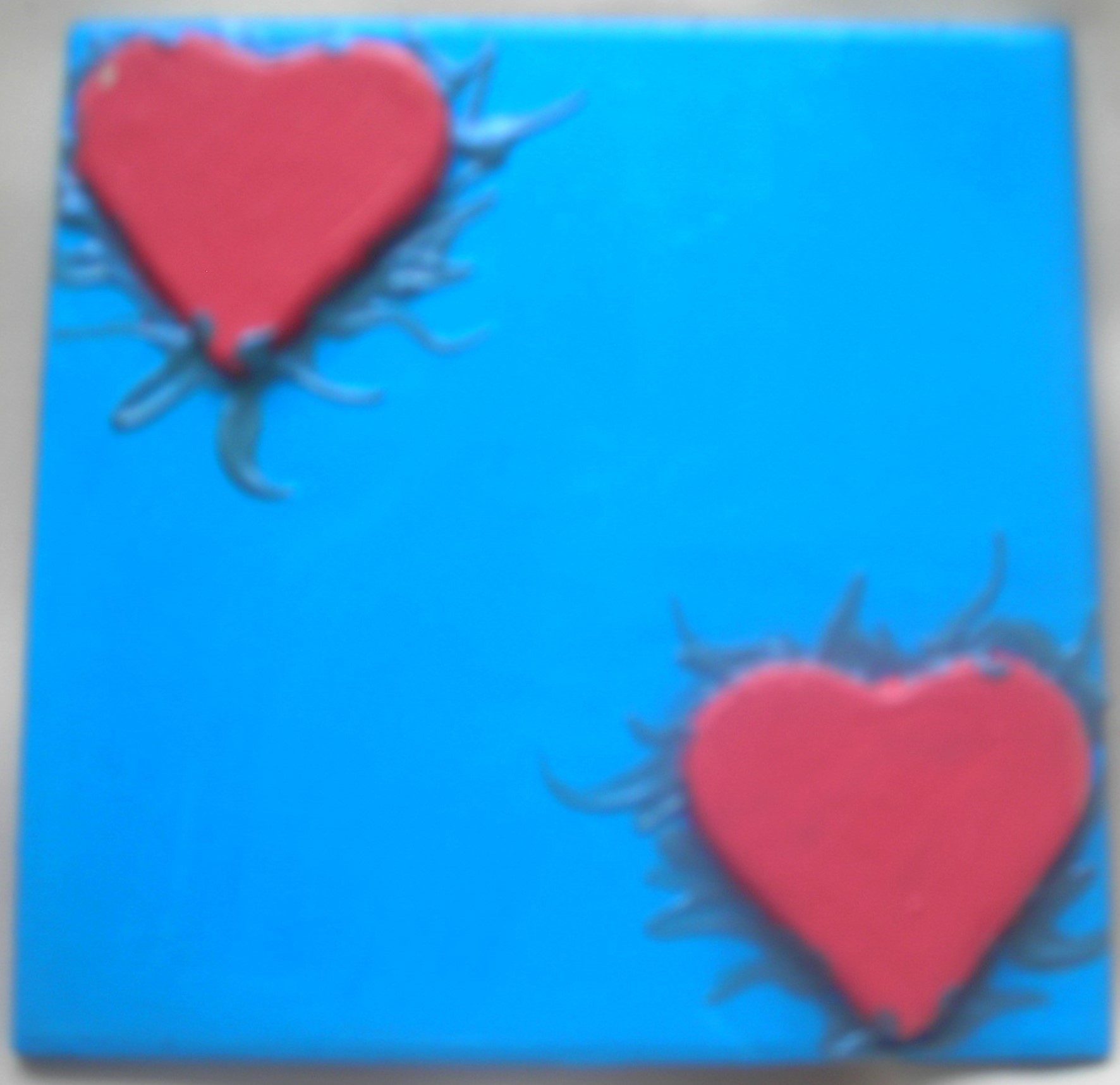 Pintura de Tinta acrílica sobre Azulejo 15cmX15cm com moldura de flores secas perfumadas em suporte de cortiça pronto a pendurar.